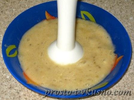 Затем взбить погружным блендером. Если нет блендера, то протереть банан через сито или мелкий дуршлаг.