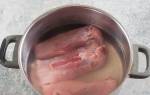 - Сначала необходимо промыть бараньи языки под проточной водой, удалить прожилки и пленку, а затем поместите в глубокую кастрюлю.
