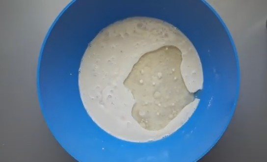 Важно! Не берите горячее молоко, иначе дрожжи не начнут свою работу.