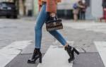 Пара черных ботильонов с открытым носком, из коллекции осень 2019, сливаются с ними в единое целое, удлиняя ноги.