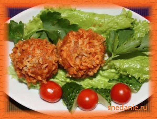 - Мясные ежики подаем к столу с гарниром и подливой.