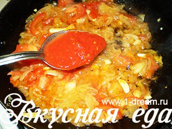 - томат-паста, можно готовить с помидорами или смесью томат-пасты и помидоров