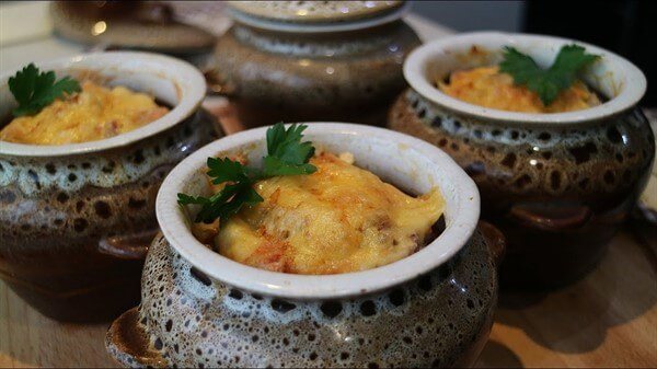 - Содержимое горшочка укладывают слоями или перемешивают — на вкус это не влияет.