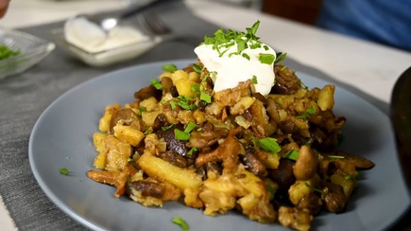 Опята жареные с картошкой и сметаной