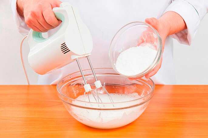 - По завершению процесса взбивания влейте лимонный сок, он выступит стабилизатором устойчивой консистенции.