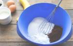 - Смешайте в миске порошок какао, кофе молотый, муку, разрыхлитель и сахар.