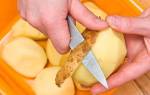 3. По прошествии часа, чистим и нарезаем картофель на кружочки и отправляем к мясу. Перемешиваем и оставляем на 15 минут.