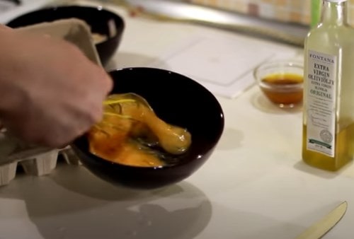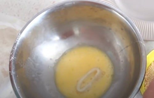 - Взбейте яйцо со щепоткой соли.