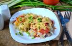 Очень вкусное мясо, приготовленное с картошкой, помидорами и сыром