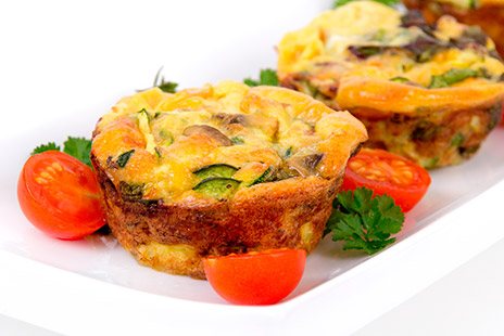 Ингредиенты (на 6 больших маффинов или 12 маленьких): 240 г муки, 2 ч. л. разрыхлителя, 2 яйца, 240 мл молока 3,5%-й жирности, 25 г сливочного масла, 30 г вяленых томатов, 65 г сыра, 65 г ветчины, соль и перец по вкусу.