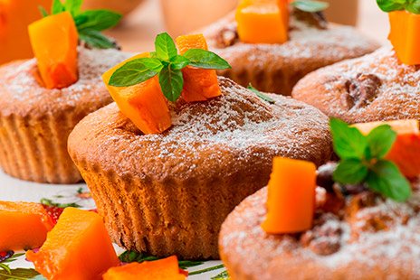 Инструкция. Два вида муки смешайте, добавьте мускатный орех, корицу, кардамон, соль. Тыкву почистите и натрите на терке. Изюм замочите на 30 минут в теплой воде. Орехи мелко порубите. В муку добавьте тертую тыкву, орехи, газированную воду. Перемешайте. Введите соду и растительное масло. Перемешайте, добавьте изюм. У вас должно получиться тесто консистенции густой сметаны. Разложите его по формочкам, заполнив их почти до верха. Выпекайте в разогретой духовке 20 минут при температуре 200°С. Проверьте готовность деревянной шпажкой.