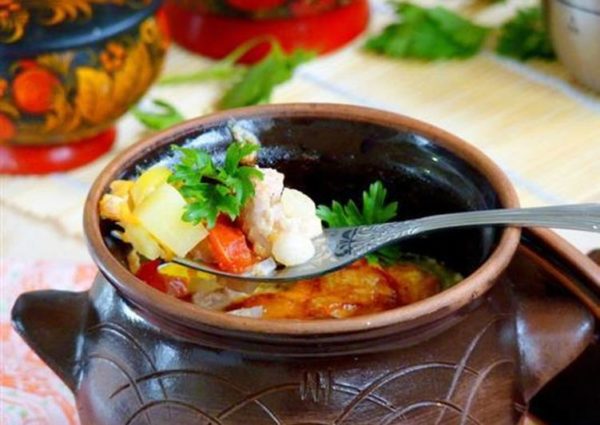 - Продукты желательно закладывать в горшок послойно. Тогда ингредиенты лучше пропитаются соком и ароматом друг друга.