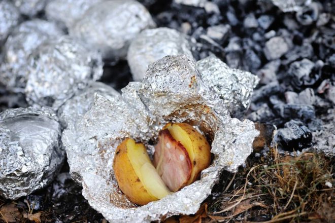 Картофель в фольге на костре – аппетитное и сытное блюдо.