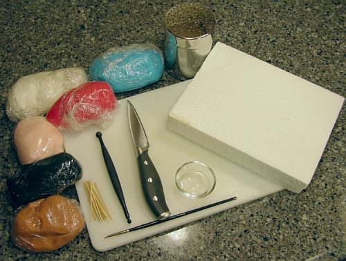 Понадобится 4 цвета мастики: желтая, белая, коричневая и черная, а также инструменты.