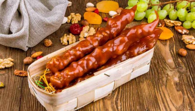 - светло-шоколадная чурчхела получается при использовании виноградного сока;