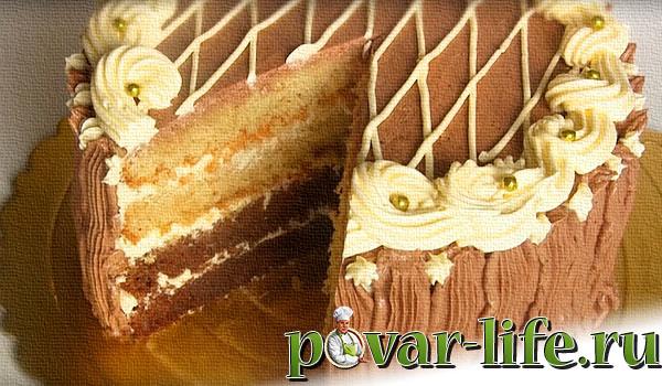 Бисквитный торт «Золотой ключик» можно приготовить дома. Необходимо испечь белый и шоколадный бисквит.