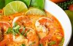 - Супы – классика тайской гастрономии, прекрасно прижившаяся в средней полосе России. Пряные, кисло-сладкие, насыщенные специями первые блюда подаются в качестве дополнения к основному меню. Самые знаменитые супы – Том Ям (мясной бульон), Том Кха (из кокосового молока), Каенг Шуш (овощной суп с креветками).