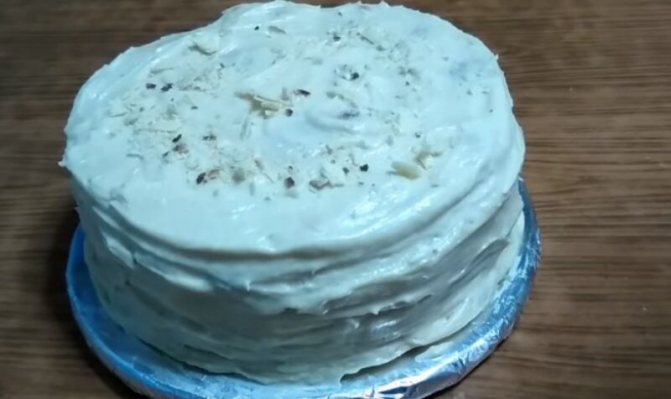 - Практически готовый торт убираем в холодильник для пропитки часов на 6.