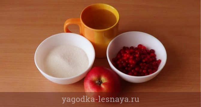 Состав на самом деле нужен такой: килограмм брусники + килограмм яблок + два стакана воды + два килограмма сахара. Можно добавить несколько палочек гвоздики или корицы.