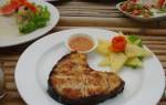 Этот рецепт можно реализовать только с внушительными по размеру рыбинами. Крупные особи можно разделать и филе, и на стейки. Из головы и скелета, оставшихся после обработки тушки, получится вкуснейшая уха. Отделенное филе кроим небольшими кусками (как правило, насчитывается 8-10 кусочков).