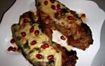 В надрезы, которые мы делали в спинке, вставляем полукольца лимона или поджаренные кольца морковки и подаем с салатом.